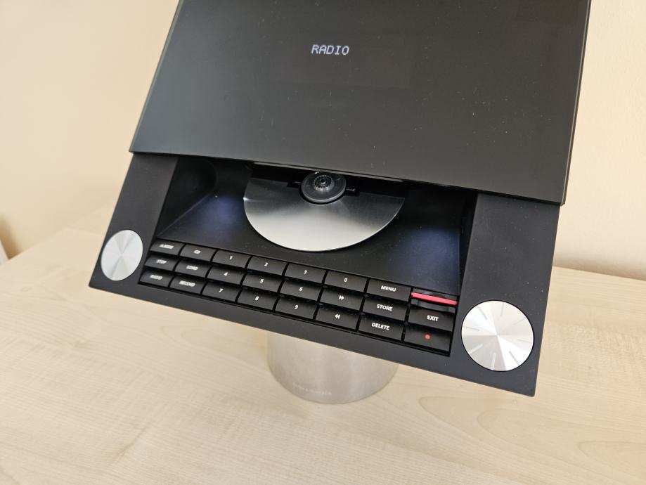 Kada približite ruku uređaju BeoSound 4, tamna staklena vrata se nježno podižu i otkrivaju funkcijske tipke i upravljačke kotačiće. Ako odaberete CD, staklena vrata se dodatno otvore, a CD mehanizam se podiže prema vama. Na grafičkom zaslonu sve funkcije su jasno prikazane u tekućem tekstu, a u kombinaciji s kotačićima i funkcijskim tipkama omogućuje jednostavno i intuitivno upravljanje svim glazbenim funkcijama. Osim menija, dostupna vam je i rotirajuća tipka s funkcijom klika koja omogućuje brz pristup brojnim informacijama.