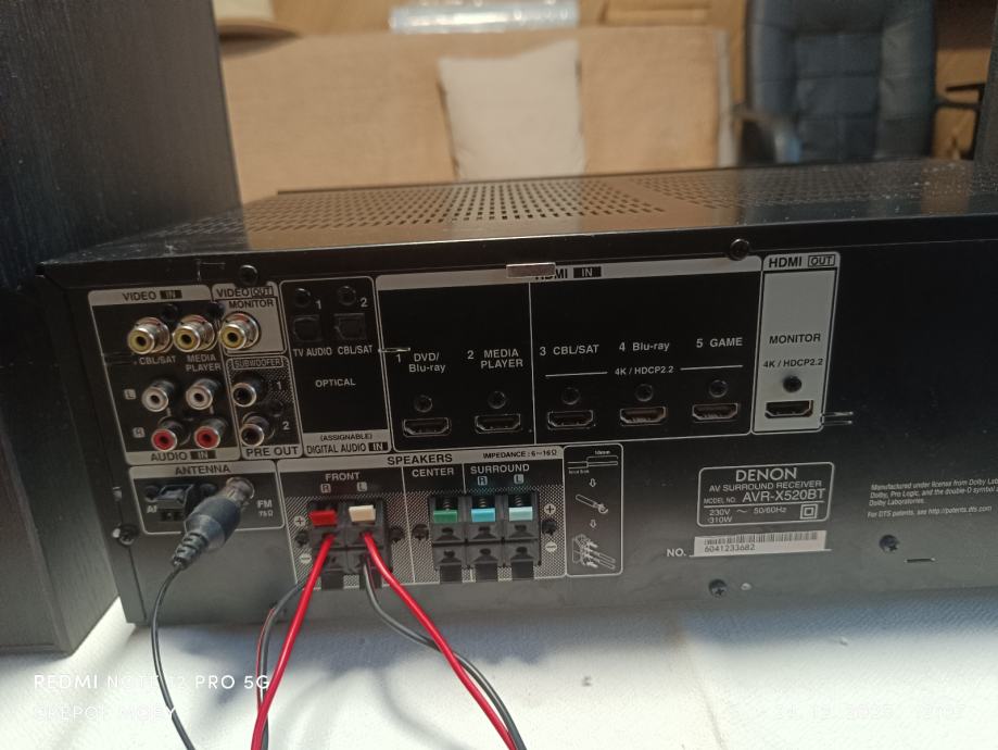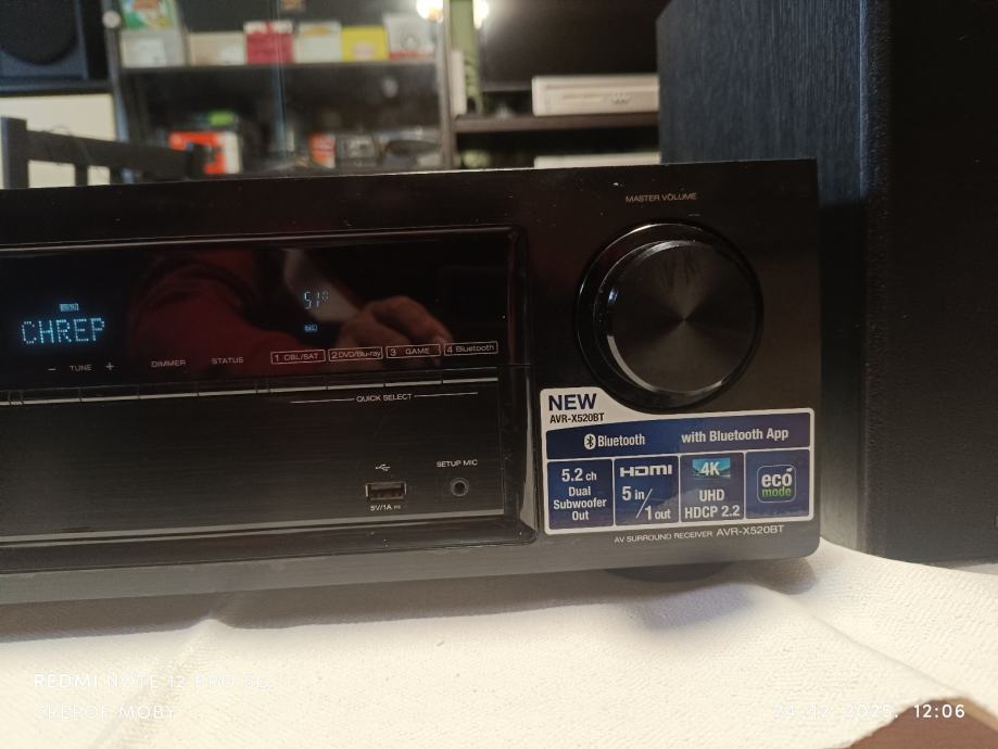 Audio receiver s ugrađenim usb playerom i bluetoothom za streamanje glazbe s interneta. Daljinski i mikrofon za kalibraciju.