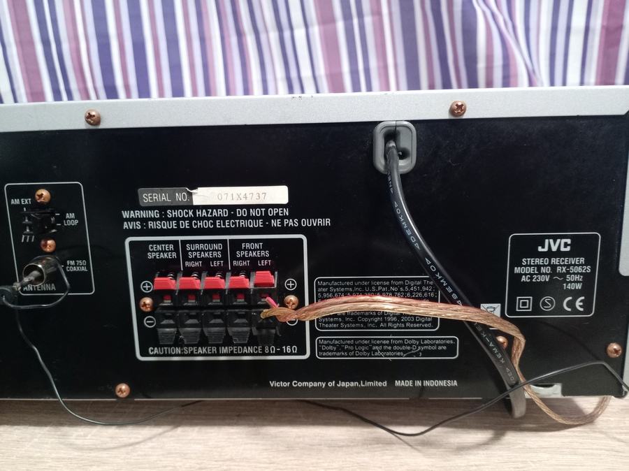 Prodajem av receiver pojačalo JVC RX 5030 , ispravan , 5x100w na 8ohm , Surround output: 100W (front), 100W (center), 100W (rear) , dimenzije :43,5 x 15 x 37 cm , težina 7 kg . tel : 099 4722848