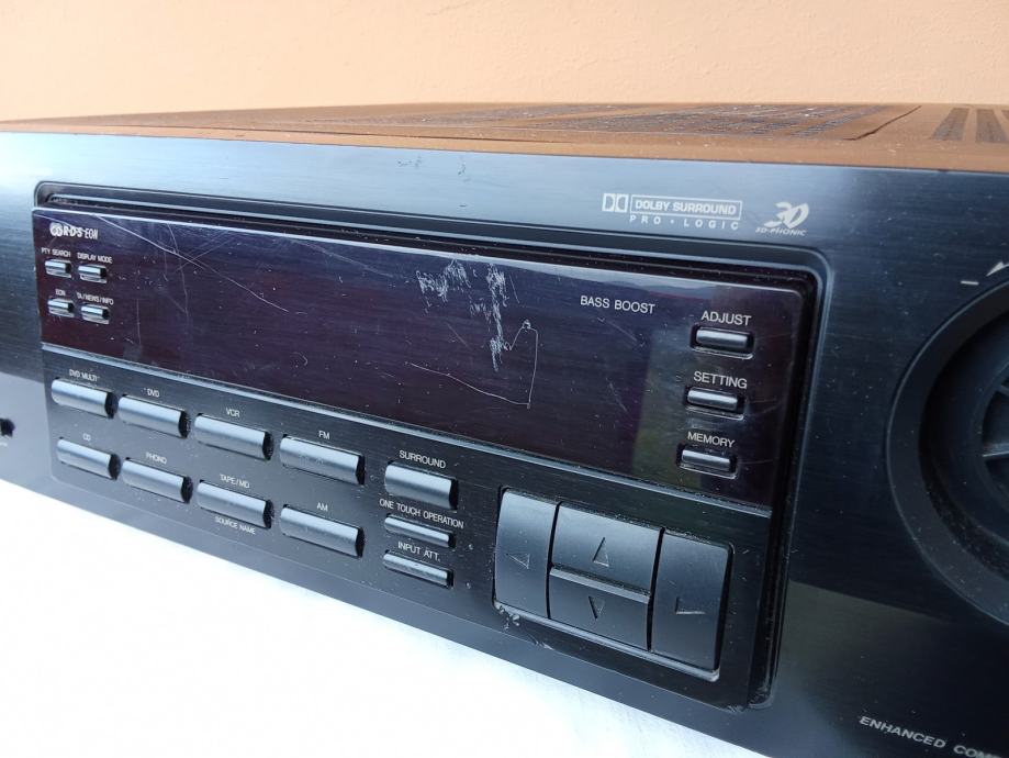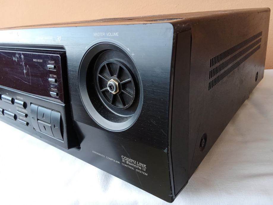 Nedostaje kotač kojime se upravlja potenciometrom za glasnoću, pa se tim potenciometrom upravlja pomoću npr, plosnatog odvijača (kacavida, šarafciger) ili se glasnoća podesi pomoću dlajinskog urpavljača. Sve ostalo čime se može upravljati tipkama koje su na samom uređaju radi savršeno ispravno, a i ponciometar za glasnoću je potpuno ispravan. Uz uređaj kupac dobiva prijemnik bluetooth signala, koji se napaja iz utičnice napona od 110 do 240 V, a primljeni signal kabelom šalje u uređaj, putem nekog od tzv. aux ulaza (DVD FRONT, TAPE, CD, VCR). Daljinski upravljač je nov, univerzalan, njime se postiže SKORO sve što se može postići i sa originalnim upravljačem, njime se ne mogu memorirati radio stanice, a FM frekvencije se mogu pretraživati samo u jednom smjeru, tj. frekvenciju mogu promijeniti samo na nižu vrijednost. Ali, tipkama na samom uređaju mogu se normalno pretraživati i memorirati stanice pa se putem daljinskog upravljača mogu birati spremljene stanice.