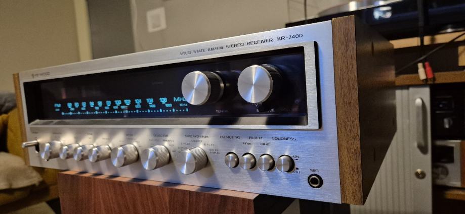 Stavljam na prodaju još jedan dragulj iz svoje kolekcije, ovaj put radi se o Kenwood kr 7400 u odličnom vizualnom i tehnički ispravnom stanju. Uređaj je u near mint stanju , par sitnih crtica na poklopcu. Sve radi odlično, prijem fm stanica fantastičan , i jako bitno izlazni tranzistori su original.