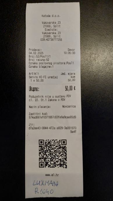 zamjenjene sve lampice,po tehničkim specifikacijama,u audio servisu Katoda-Split(slika računa).