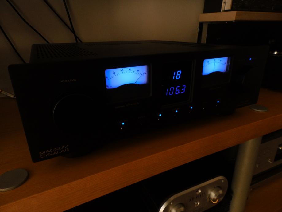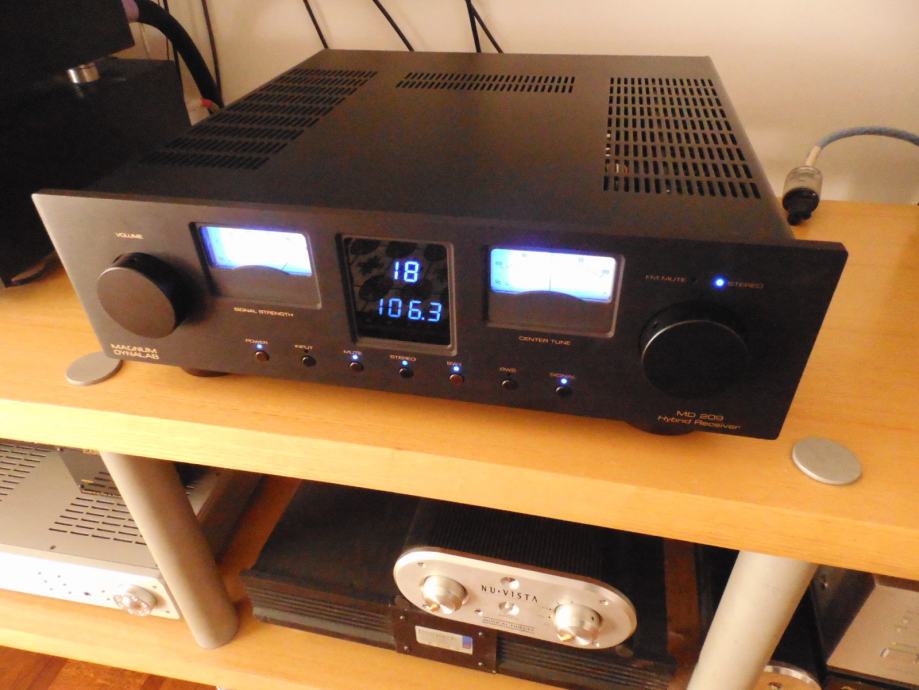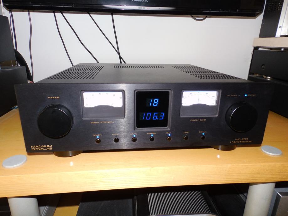 Magnum Dynalab 209, verovatno najbolji stereo risiver na svetu. Ko voli dobar FM, bolje od ovoga nema. Ostatak uredjaja na istom nivou, preamp sekcija sa lampama (criogenizovane ecc 88), snagaška sekcija sa 20 bipolarnih Sanken tranzistora, koji isporučuju 125 čistih watt-i na 8 ohm ili 250w na 4 ohm. Unutra sve najbolje, Mundorff kondenzatori, Kimber ožičenje, WBT zvučnički terminali, Cardas konektori. Dva balansirana ulaza + tri rca, dva rca izlaza, za woofer ili tape. Verzija bez daljinskog I bez dac-a. Moguć dogovor oko prevoza do Zagreba.
