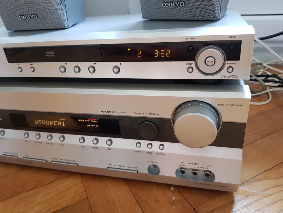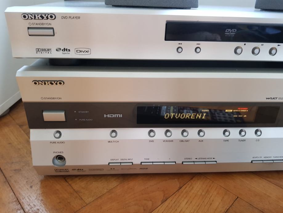 Na prodaju je reciver onkyo i dvd. Radi uredno , hdmi nemam pojma da li radi jer nemam uređaj za probu. Dolazi s daljinskim upravljačem i 2 zvučnika, te bez bilo kakve opreme i kablova. Za tehničke karakteristike molim proguglati. Zamjena me ne zanima. Cijena je fixna. Ukoliko je potrebno slanje moguće je samo uz prethodnu uplatu na račun. Ne odgovaram na SMS poruke ili pozive, dakle sav kontakt i dogovor isključivo tu preko njuškala.