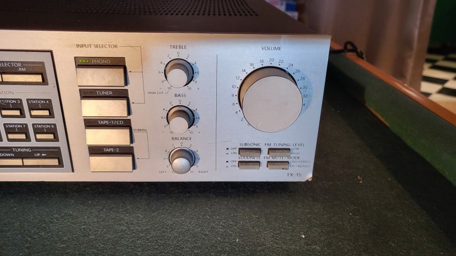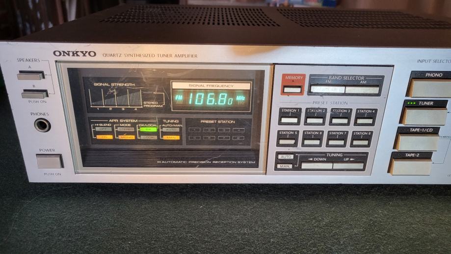 Krasan digitalni receiver iz 80ih u vrlo dobrom stanju. Ima par sitnih ogrebotina ali je svirački odličan, svježe servisiran. 2x45w na 8 ohma. Težina 7,3kg. Jedna štipaljka za zvučnički kabel je otkrhnuta ali radi bez problema. Phono ulaz. A i B zvučnici. Moguća zamjena za razno. Šaljem poštom. Pogledajte i moje ostale oglase.