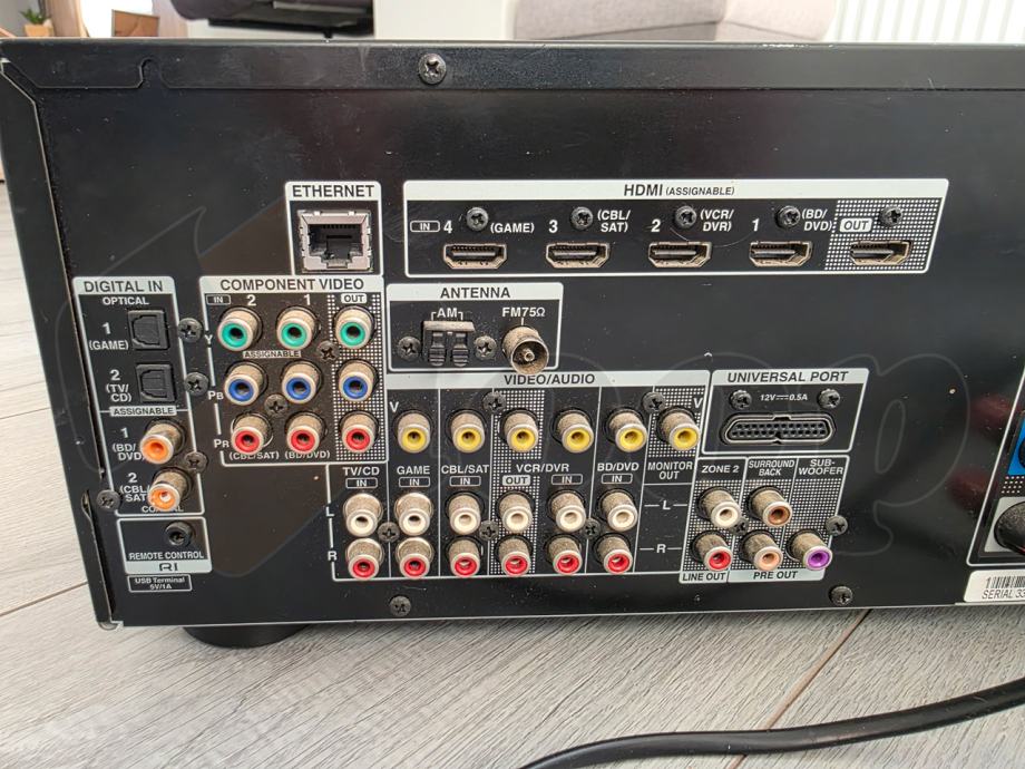 Type HDMI input, component video output, composite video input, composite video/audio input, composite video/audio output, headphones, subwoofer output, HDMI output, LAN, SPDIF input, USB, audio line-in, audio line-out (multi zone), component video input