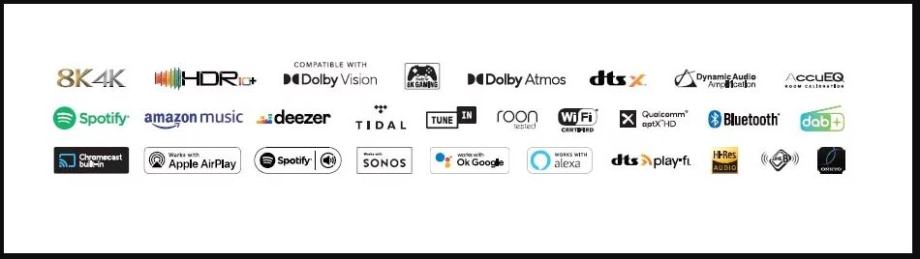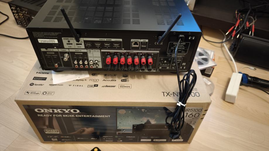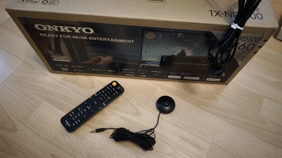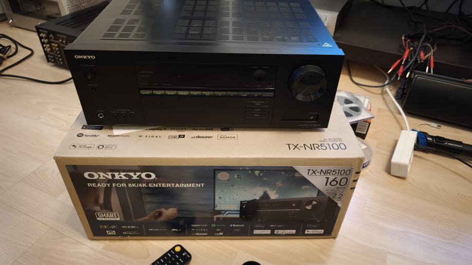 Onkyo TX-NR5100, 7.2-Channel 8K/4K HDR10+ AV Receiver,Klipsch Optimize Mode,Access to Spotify®, TIDAL, Deezer, TuneIn, and Pandora® are built into the system, DOLBY ATMOS AND DTS:X, DAB+ / FM, ovo su samo neke mogućnosti ovog uređaja, stanje novog slike su od uređaja koji prodajem.