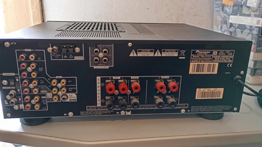 prodajem receiver Pioneer vsx-415 u odličnom stanju sa zamjenskim daljinskim koji savršeno radi i podržava sve funkcije...savršen za kućno kino i hi-fi reprodukciju...receiver bez greške i bez ikakvih oštećenja....spreman za rad...šaljem i poštom...tehnički podaci u linku ispod...moguć dogovor