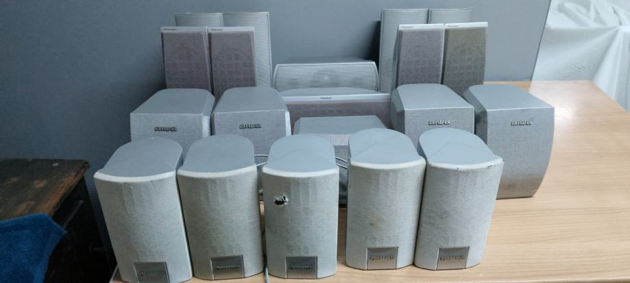 Pioneer VSX-917V receiver 7.1 kanalni iz vlastite kolekcije, odlicno ocuvano i atraktivnog izgleda te ODLICNOG zvuka u surround i stereo modu + 5 zvucnika GRATIS sa zadnje slike (za max uzivanje i zvuk preporucam dodatak subwoofera - pogledajte moje ostale oglase za njih), ide sa daljinskim i kalibracijskim mikrofonom sa slika, iskljucivo osobno preuzimanje - Sesvete - Đurđekovec, ne saljem niti pay protect, moguca proba kod kupnje, ako bilo sta ne pase, molim trazite dalje, privatna prodaja - bez garancije i povrata, zamjene me ne zanimaju, cijena je navedena (te fixna i zadnja, moze 10E dolje za dolazak i ispod toga ne trebate gubit vrijeme), kao i opis svega u detalj, kontakt ovdje ili na 091 455 55 53