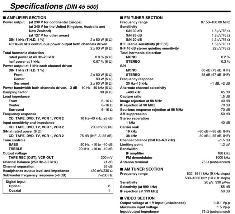 Output power: 5 x 80 W