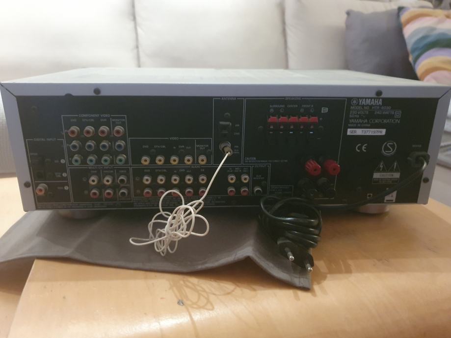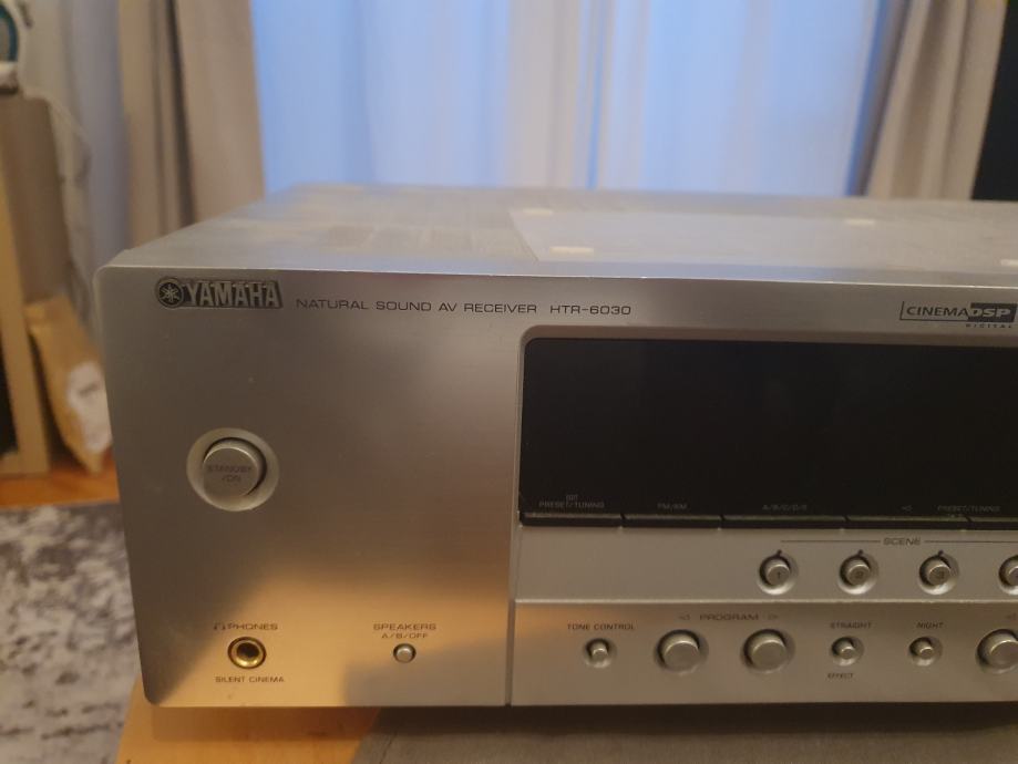 Prodajem Yamaha HTR-6030 Natural Sound AV receiver u srebrnastoj boji. Receiver je opremljen s Cinema DSP tehnologijom i nudi razne mogućnosti spajanja uređaja preko brojnih ulaza i izlaza. Prednja ploča uključuje digitalni zaslon, gumbe za odabir izvora i postavki te veći regulator glasnoće. Ima i priključak za slušalice na prednjoj strani. Stražnja strana opremljena je s nizom RCA priključaka za različite audio izvore, kao i ostalim vezama potrebnim za povezivanje zvučnika i dodatnih uređaja.