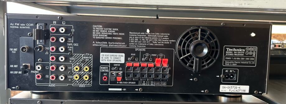 Prodajem Technics SA-GX 370 AV receiver, kvalitetan stereo pojačalo s mogućnošću surround zvuka. Uređaj dolazi s originalnim daljinskim upravljačem. Receiver ima sve standardne priključke na stražnjoj strani - ulazi za različite audio izvore, izlazi za zvučnike, video priključci. Prednja strana ima digitalni zaslon, kontrole za glasnoću i odabir izvora, kao i kontrole za ton i balans. Sve funkcije su pristupačne i s daljinskog upravljača. U stereo modu je 2x50 W, u dolby digital, 4 x 40w. Vrhunski zvuk.