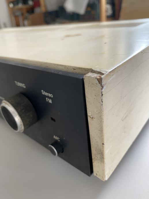 Uređaj je korišten u dobrom stanju, ali u zadnje vreme je bio prepušten prašini. Poklopac uređaja je od drveta. Farba je popustila na nekim mestima. Poklopac se može prebrusiti i ponovo ofarbati.