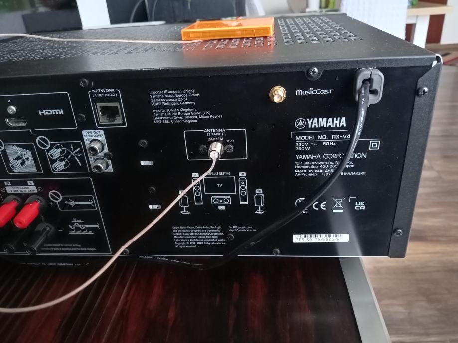 YAMAHA RX-V4A je 5.2-kanalno radio pojačalo s Wi-Fi, Bluetooth, AirPlay i Amazon Alexa kompatibilnošću. Ovaj AV prijamnik u potpunosti će transformirati vaše slušanje i gledanje kod kuće. Osim toga, obilje značajki znači obilje izbora kako uživati u zabavi. Ima snagu 80W po kanalu. 4 HDMI ulaza, 1 izlaz. HDR10+ pruža dublji kontrast i realističnije slike koje ostaju vjerne namjerama autora. 4K/120Hz omogućuje veću brzinu osvježavanja, pružajući vam uglađenije i realističnije iskustvo gledanja.