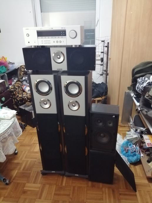 Prodajem Yamaha RX-V350 receiver + VTrek zvučnici. Set zvučnika: centralni, 2 prednja i 2 zadnja. Uz to, poklanjam 2 zvučnika trosistemska (slika 2 i 3).