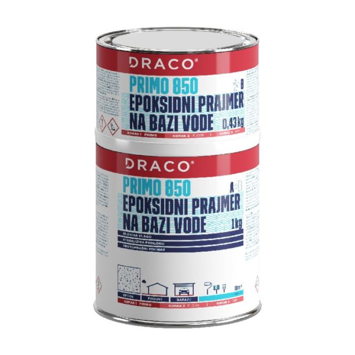 DRACO PRIMO 850 je dvokomponentni prajmer na bazi vode za DRACO GARD i DRACO FLOOR sustave te slične proizvode na bazi poliuretana i epoksida. Brzo se umrežava i upotrebljava se za gotovo svaku podlogu, čak i vrlo vlažnu.