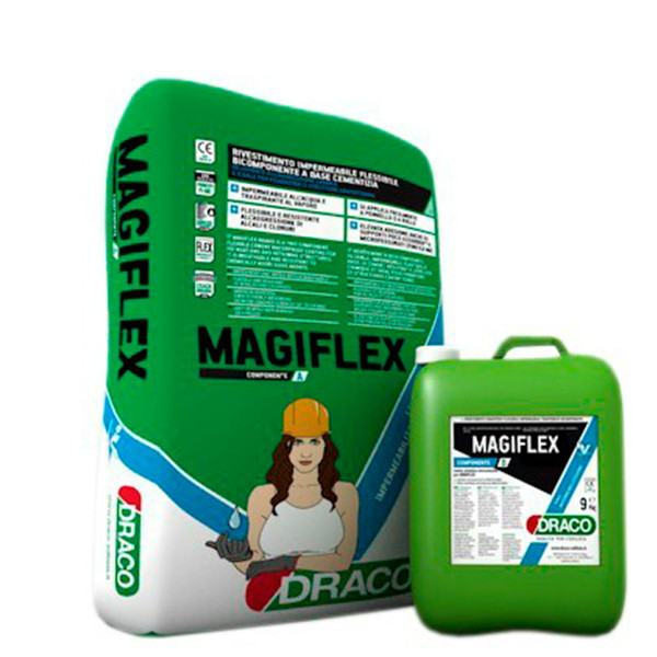 Magiflex je elasstična dvokomponentna vodonepropusna obloga koja se lako nanosi kistom , valjkom ili prskanjem za hidroizolaciju temelja,zidova,podzemnih garaža i drugo.