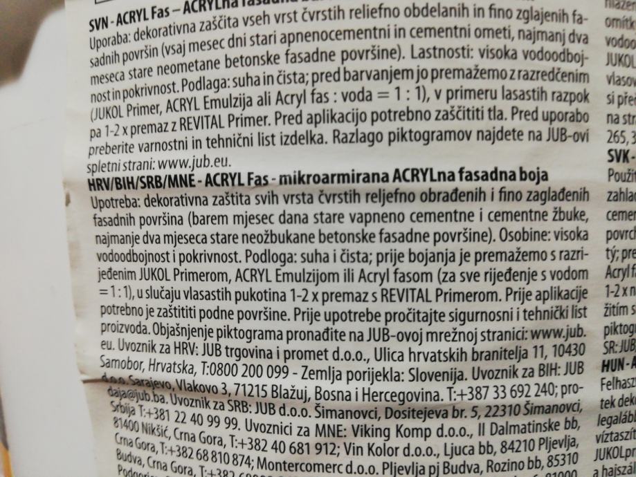 Prodajem mkroarmiranu ACRYLnu fadadnu boju u pakovanju od 2 litre, novo, original pakovanje, nikad otvarano.