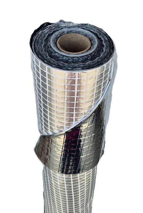 PE krovna folija s metaliziranim PP slojem pojačana PE mrežicom. Materijal: PP + PE + METPET