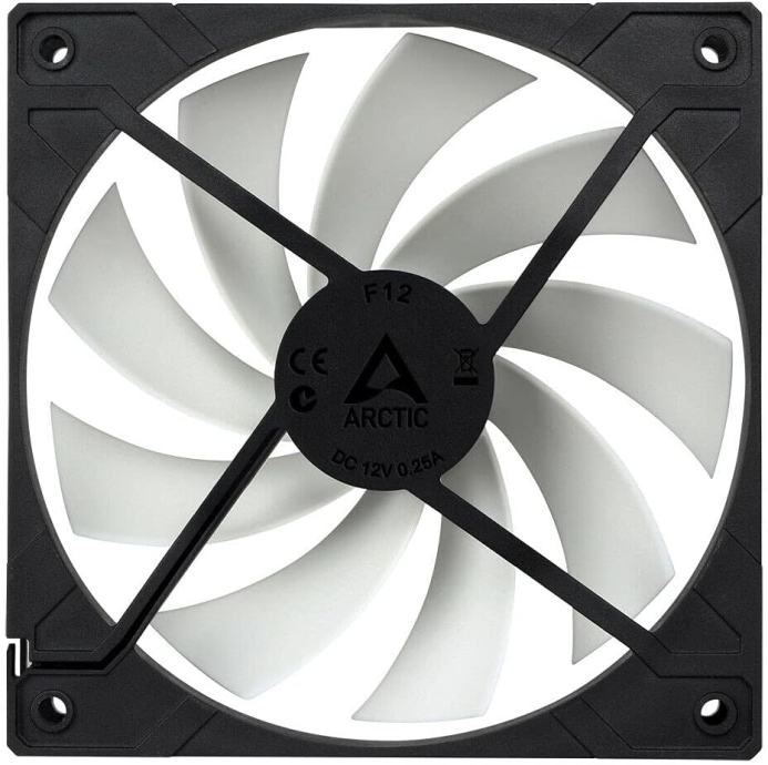 ARCTIC F12-120 mm Standard Case Fan, Quiet Motor, Computer, Push- or Pull Configuration, Fan Speed: 1350 RPM, Black&White.