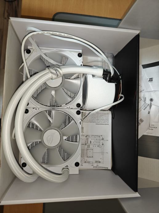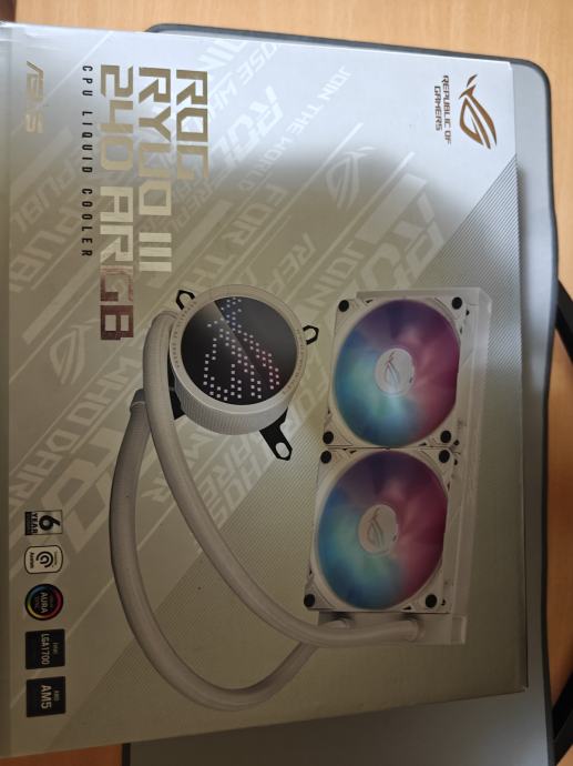 Prodam vodno AIO hlajenje ASUS ROG Ryuo III 240 ARGB White. Hladilnik je nov, nerabljen, samo odprta škatla. Vsa originalna embalaža in dodatki priloženi.