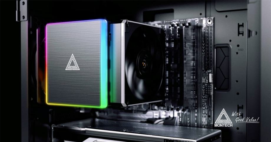 Univerzalni CPU hladnjak s dvostrukim tornjem, cijevi koja provodi toplinu, s 2 ventilatora od 120 mm s PWM regulacijom do 270 W TDP. Posebnost hladnjaka je gornji poklopac s ARGB rasvjetom.