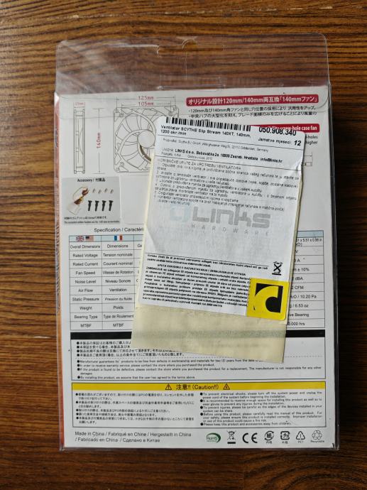 Ventilator Scythe za PC kućište je nov, kutija otvorena zbog slikanja.