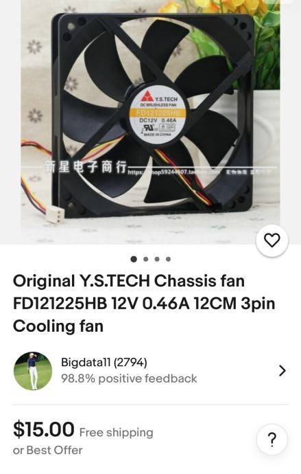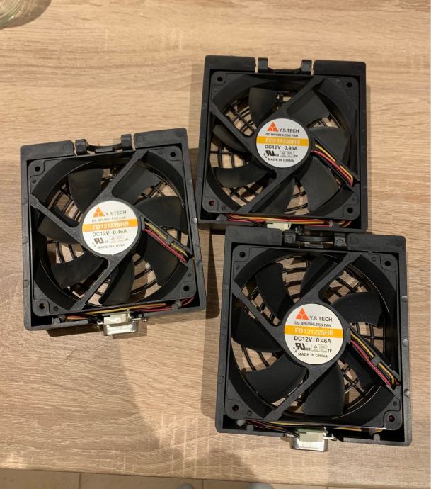 Prodaju se ventilatori Y.S. TECH - FD121225HB , 120mm brushless (motor bez četkica) kvalitetni ventilatori. Slabo korišteni, nisam ih čistio jer su malo korišteni i nemaju baš ni prašine na sebi kao što je vidljivo. 3-pin su i mogu se izvadit iz svog kučišta koji je imao drugu namjenu i koristiti za bilo šta. Cijena je za sva 3kom.