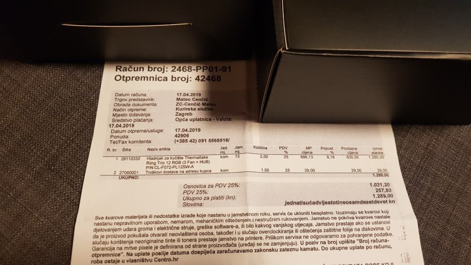 Predajem gore navedeni set od 3 ventilatora i 1 kontroler. Dolazi u original ambalaži s računom i jamstvom od 6 god. od datuma kupnje 17.4.2019. Kupljeno je u Centro.hr kojeg više nema ali jamstvo normalno vrijedi.