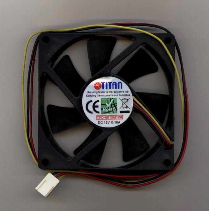 Ventilator 80x15mm 12V 3-pina ugradbeni, ispravan, nekorišten, kućni višak.