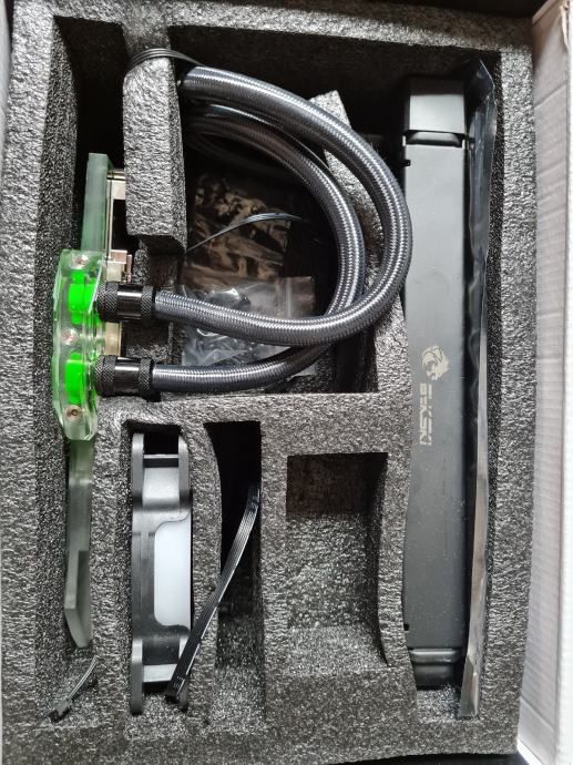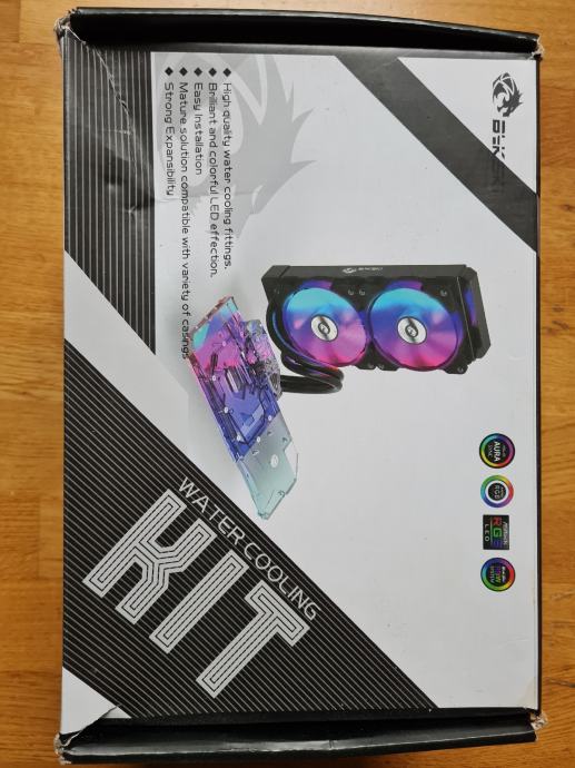 Novo nekorišteno RGB vodeno hlađenje marke Bykski za Gigabyte Aorus RTX 3090 i 3080 grafičke kartice. Na aliexpresu je cijena preko 1000kn. Nedostaje 1 ventilator.