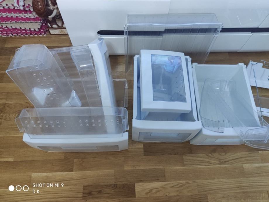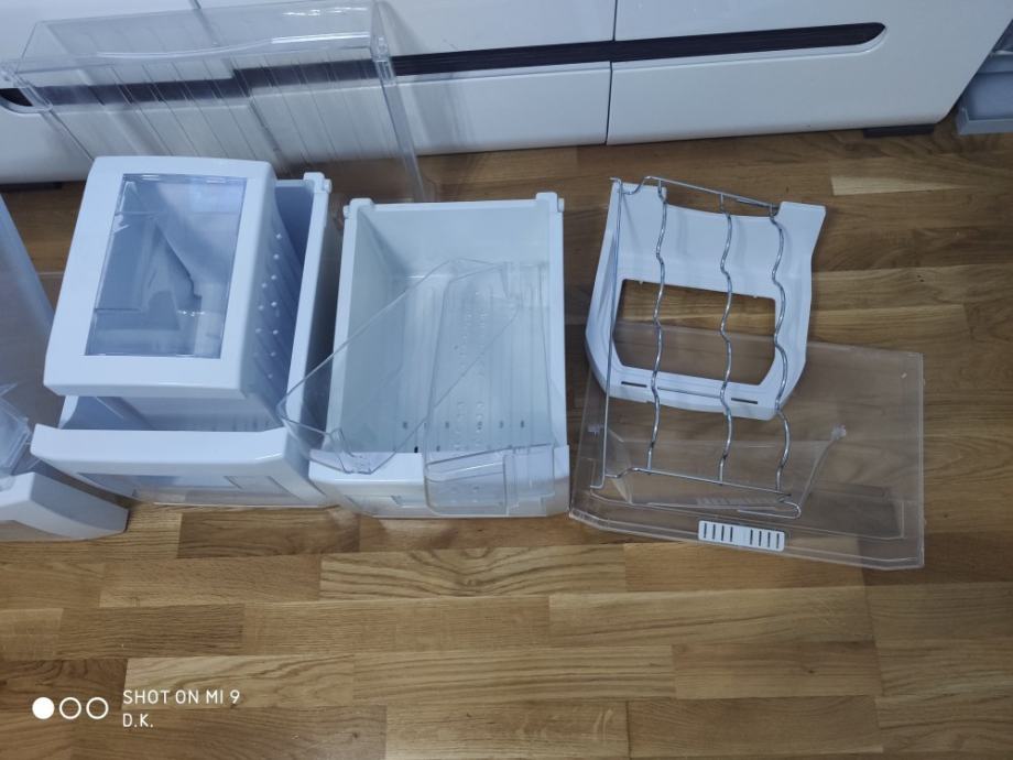 Imam sve staklene police i policu za flase, police za hladnjak i zamrzivač, prekidače,kotače klizace za police itd vidi slike.