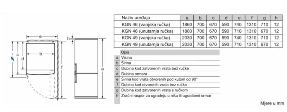 Dimenzije proizvoda (mm): 2030 x 700 x 670 mm (V x Š x D)