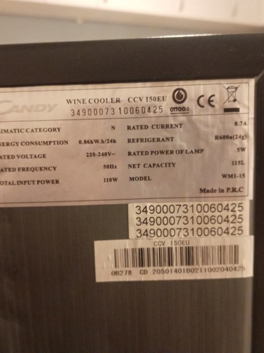 Prodajem rabljeni i potpuno ispravni Candyjev hladnjak za vino/pića, s vidljivim tragovima korištenja kao na slikama.