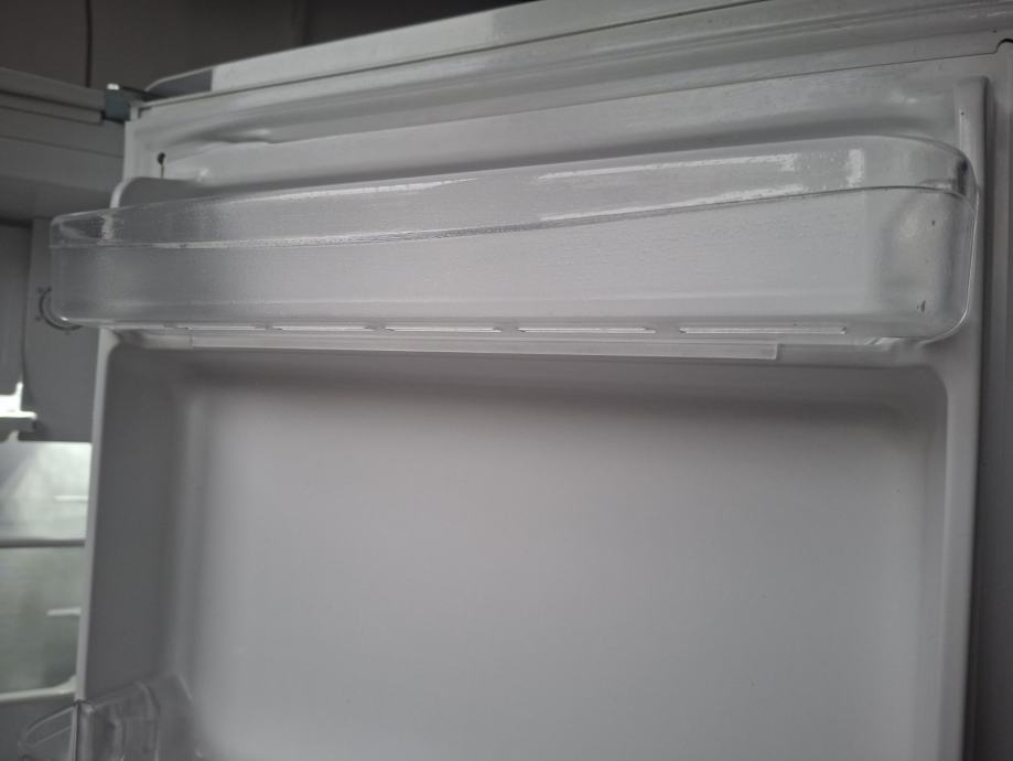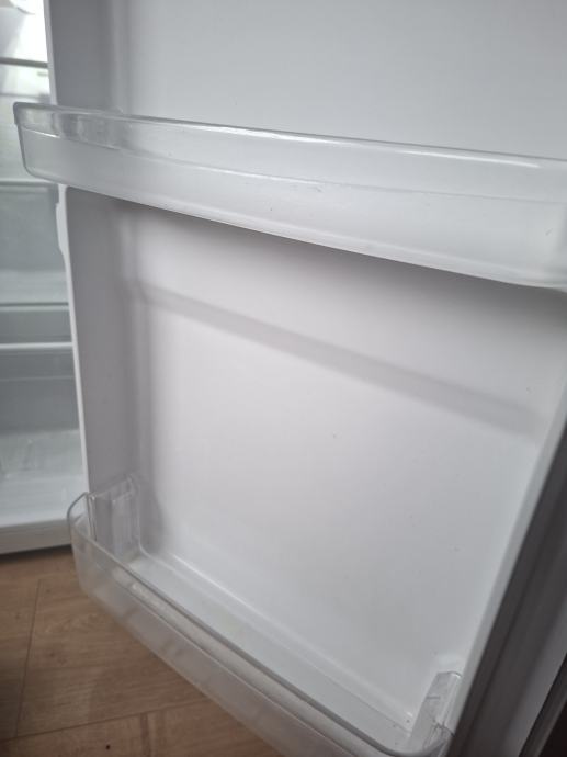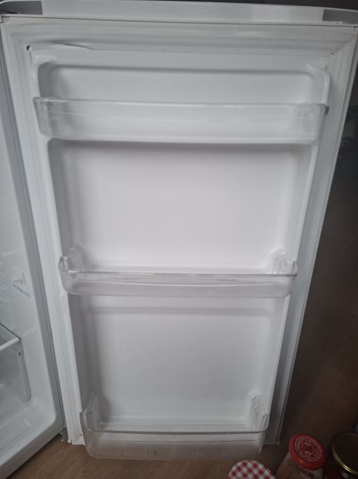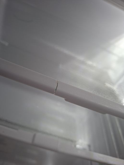 Na polici postoji manje puknuće zaštitne plastike (vidljivo na slici), ne utječe na rad hladnjaka.