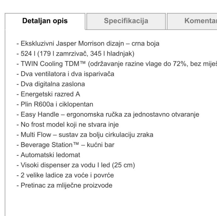 Prodajem Samsung side by side frižider crne boje s ekskluzivnim Jasper Morrison dizajnom. Kapacitet iznosi 524 litre (179 l zamrzivač, 345 l hladnjak).