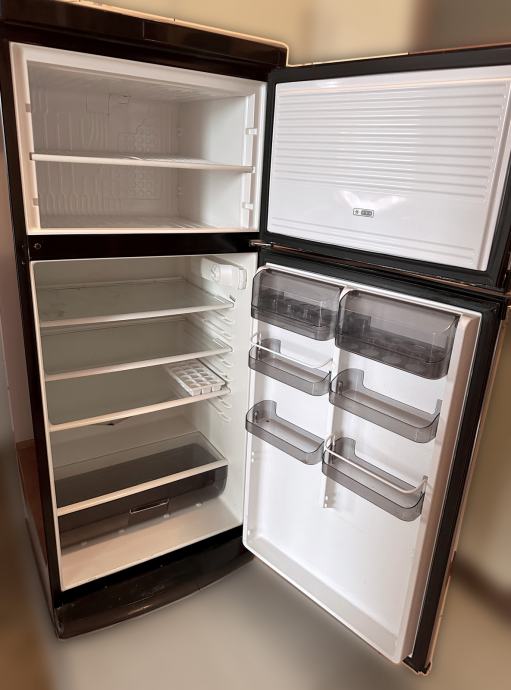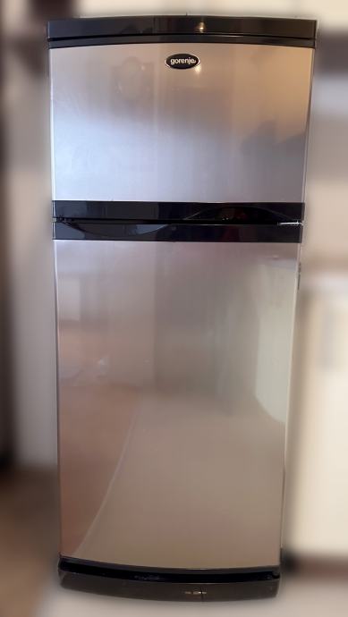 Prodaje se samostojeći hladnjak s ledenicom u gornjem dijelu marke Gorenje, srebrno-crni.