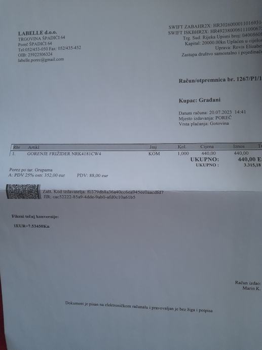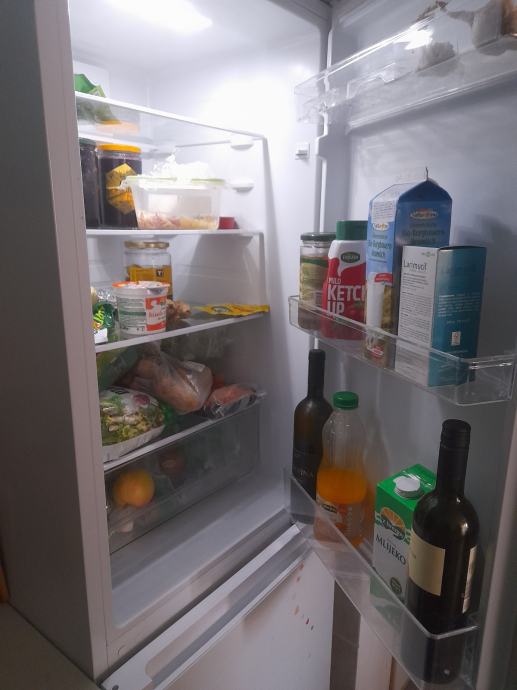 Kupljen na ljeto 2023,prodaje se zbog selidbe.Odlican samostojeci,stedni hladnjak.Pod garancijom je urednih papira sa računom.Cijena mu se spusta na 200e zbog ostecenja na vratima.Linija je nofrost dual,nema zamrzavanja stijenki,protocan