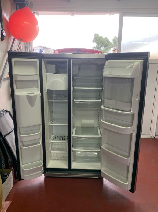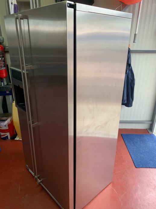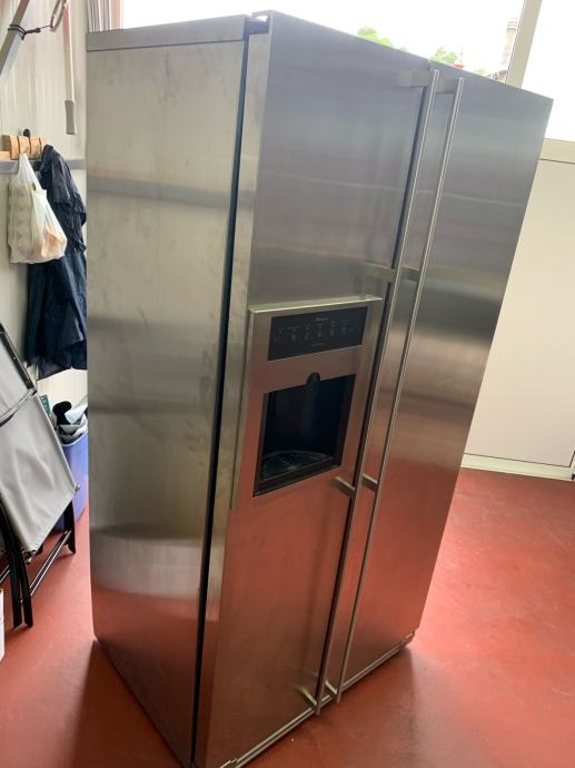 Jako kvalitetan i robustan hladnjak. Side by side - dvostruka vrata. Lijevo je zamrzivač sa unutrašnjim ledomatom, desno je hladnjak. Hladnjak ima jako puno pretinaca, opcija sa namještanje vlažnosti za pretince, itd.
