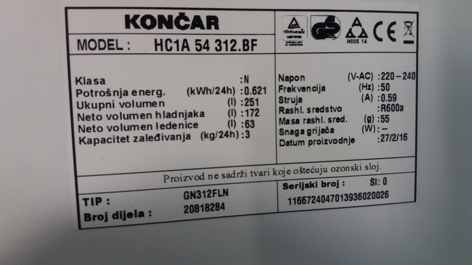 Hladnjak sa ledenicom KONČAR, kao nov jer je vrlo malo korišten. Star 8 godina.