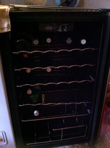 Ima unutarnje svjetlo te police koje se namještaju prema veličini boca.