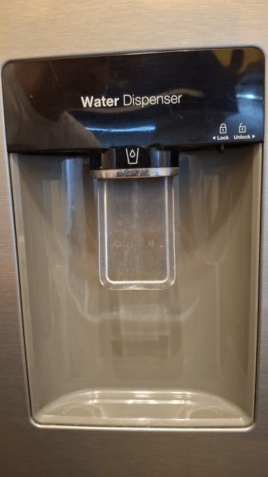 Hladnjak ima dispenser za vodu i digitalni zaslon s postavkama temperature posebno za hladnjak i zamrzivač na vanjskoj strani vratiju.