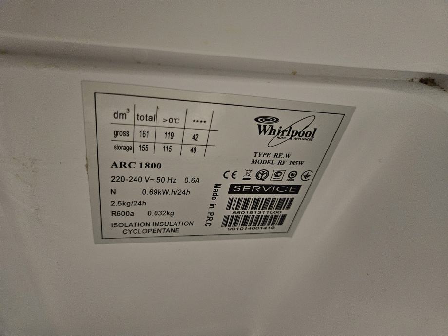 Prodajem Hladnjak Whirlpool s ledenicom model RF 185W potpuno ispravan.