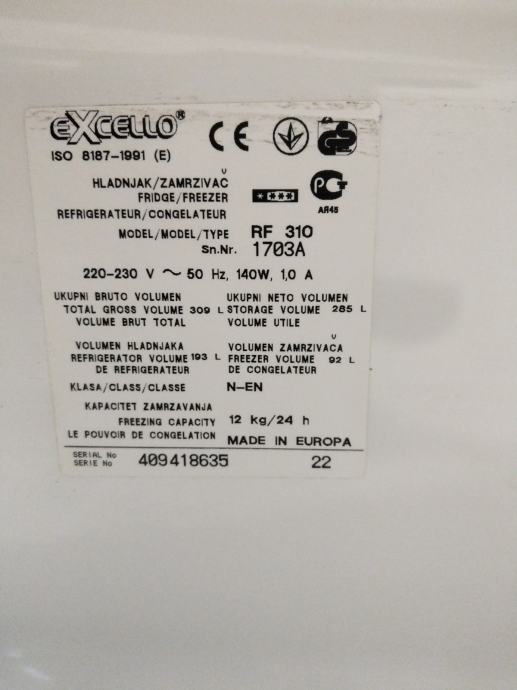 Hladnjak: u vratima (3 police - 1 zatvorena, sa poklopcem , 1 otvorena + 1 sa ogradnom prečkom za boce)