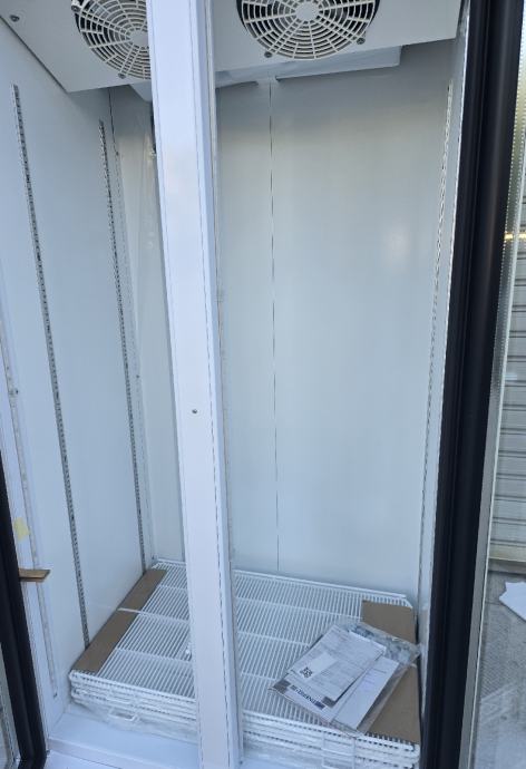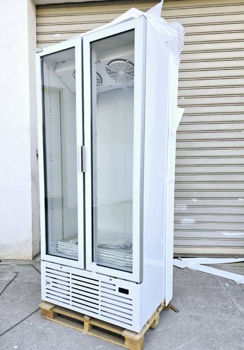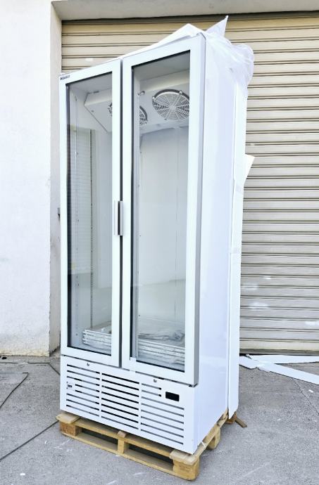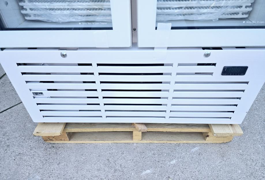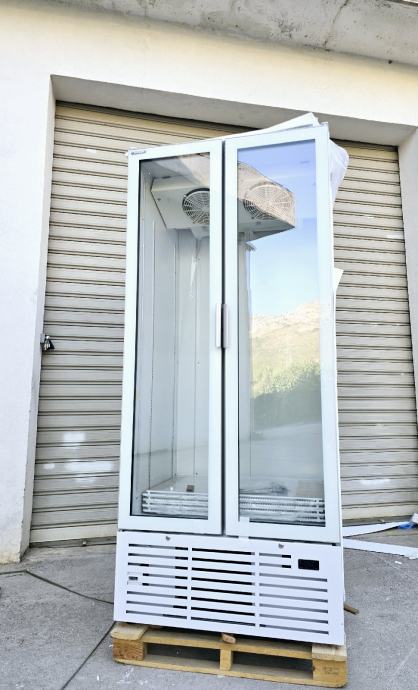 MAXI VELIKI PREMIUM dupli hladnjak.Najnoviji model.Bijela boja,4×LED rasvjeta,4 police podesive,digitalno upravljanje,vrata se otvaraju livo-desno u širinu(nisu klizna)..malo zatamnjno prednje staklo,2 ključa za vrata zaključat.