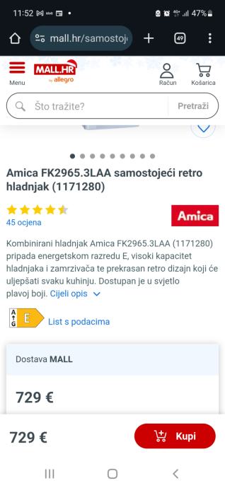 Tek kad nam je dostavljen hladnjak shvatili smo da nam ne stane u prostor. Stoga ga prodajemo.