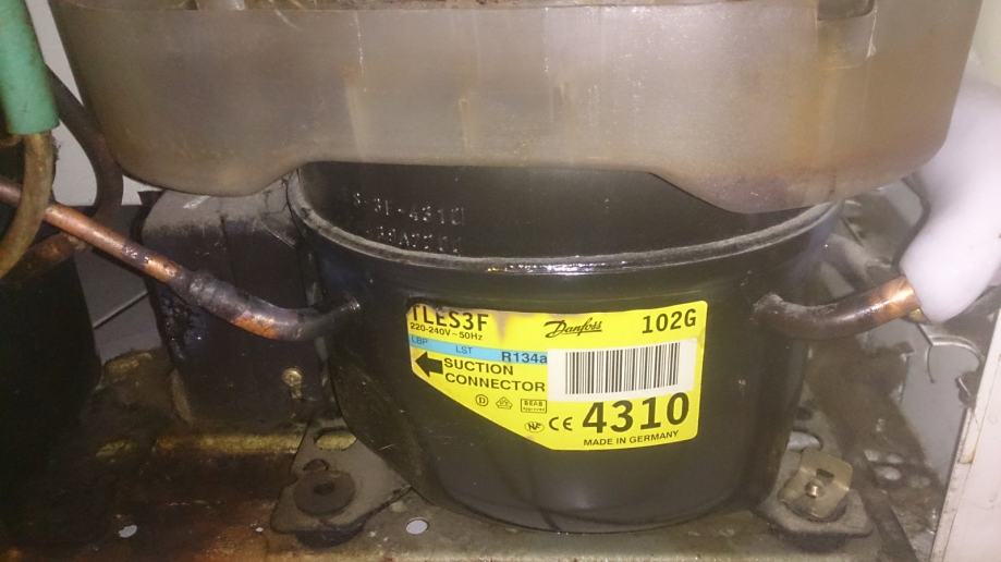 - motor / kompresor hladnjaka SECOP DANFOSS TLES3F R134A kojemu se treba kupiti muški utikač cca 5,00 (za zamrzivač je PRODAN)