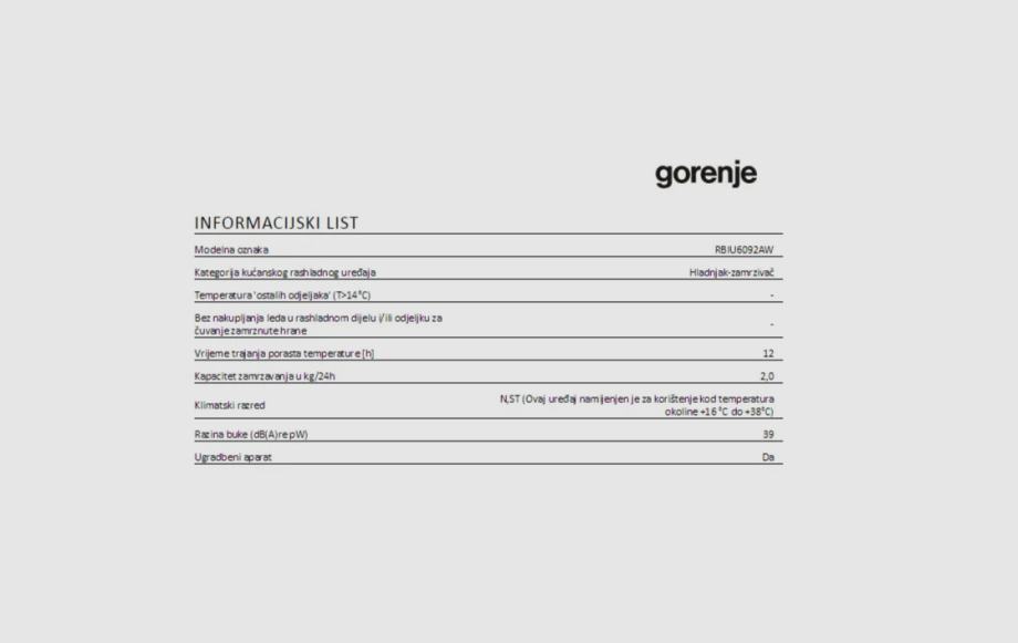 Ugradbeni hladnjak Gorenje RBIU6092AW