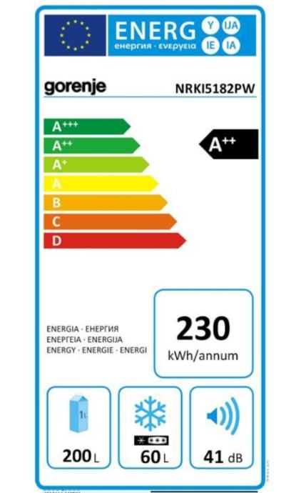 Gorenje NRKI5182PW ugradbeni kombinirani hladnjak energetskoga razreda A++ (po staroj klasifikaciji) nudi 260 litara ukupnog neto kapaciteta podijeljenoga na hladnjak i zamrzivač. Odlikuje ga elektronsko upravljanje uz pomoć LED zaslona te digitalni prikaz temperature u hladnjaku i zamrzivaču.