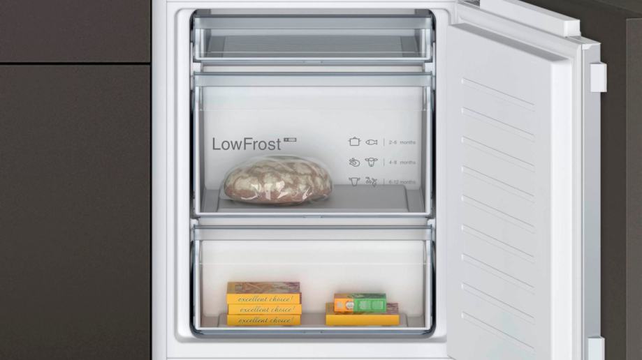 Uz Low Frost gotovo da više ne morate odleđivati zamrzivač. A kada to učinite, zahvaljujući Low Frostu, puno je brže nego s konvencionalnim odjeljcima za zamrzavanje. Štedite vrijeme. I još dobrih vijesti: Low Frost troši manje energije i gotovo je nečujan.